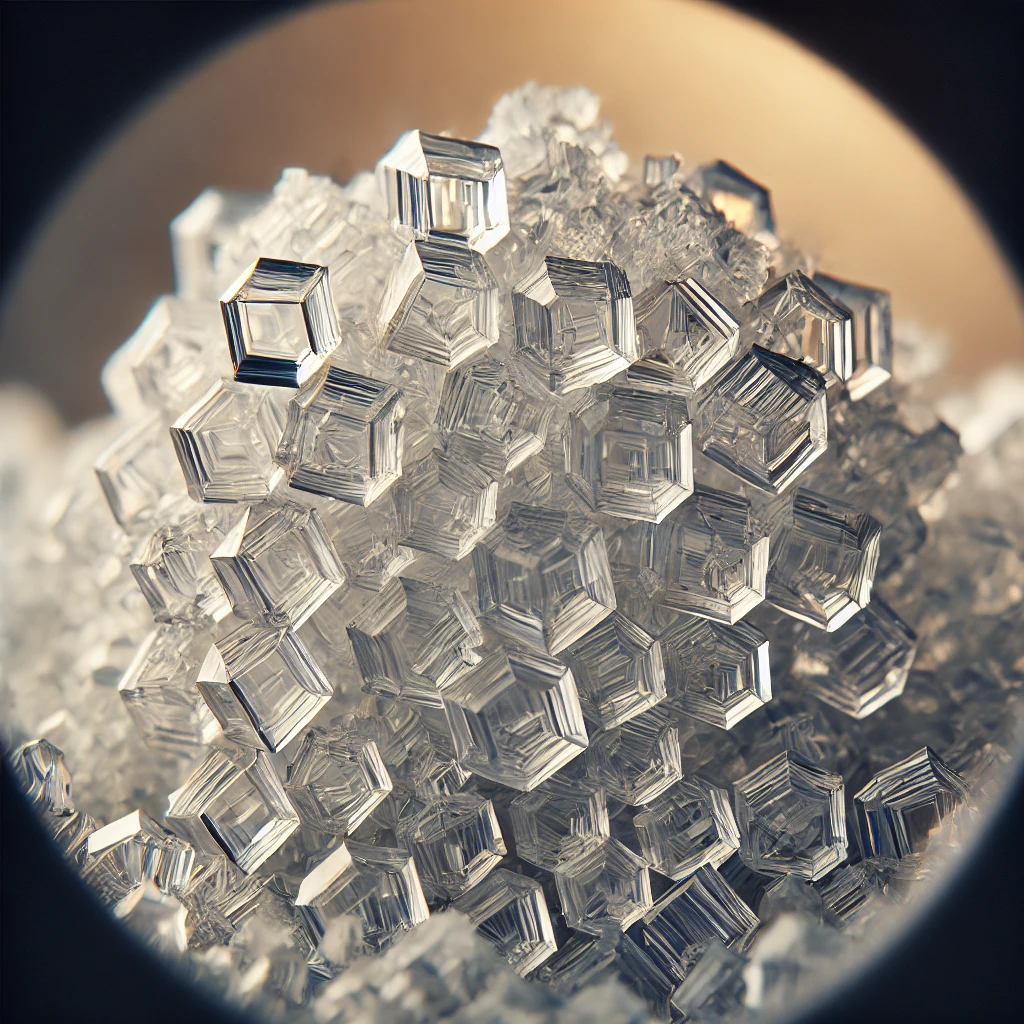 Die Bilder der mikroskopischen Kristalle sind zur Veranschaulichung KI generiert und nicht Detailgetreu.